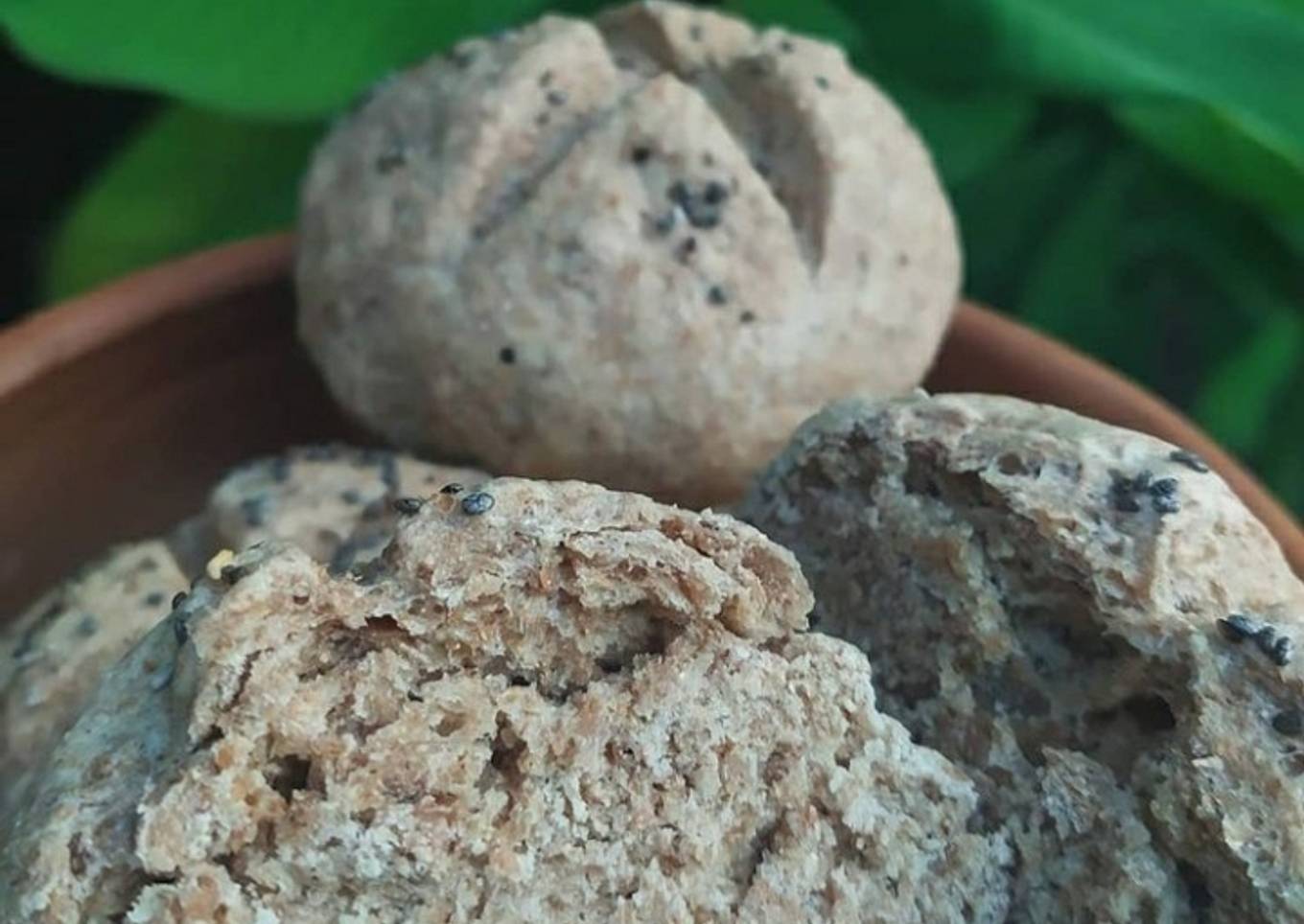 Desgasificar y formar bollitos (a mí me salieron 7 medianos) pincelar apenas con agua y agregarle semillas por encima - Llevar a una placa para horno y hornear por unos 30 min. aproximadamente.
