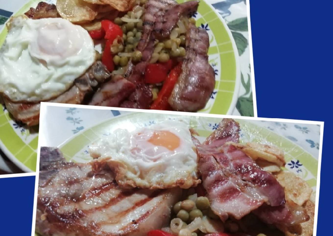 - Servir una costillita, las verduras, la panceta, las papas y el huevo frito encima. Y a disfrutar! 😋