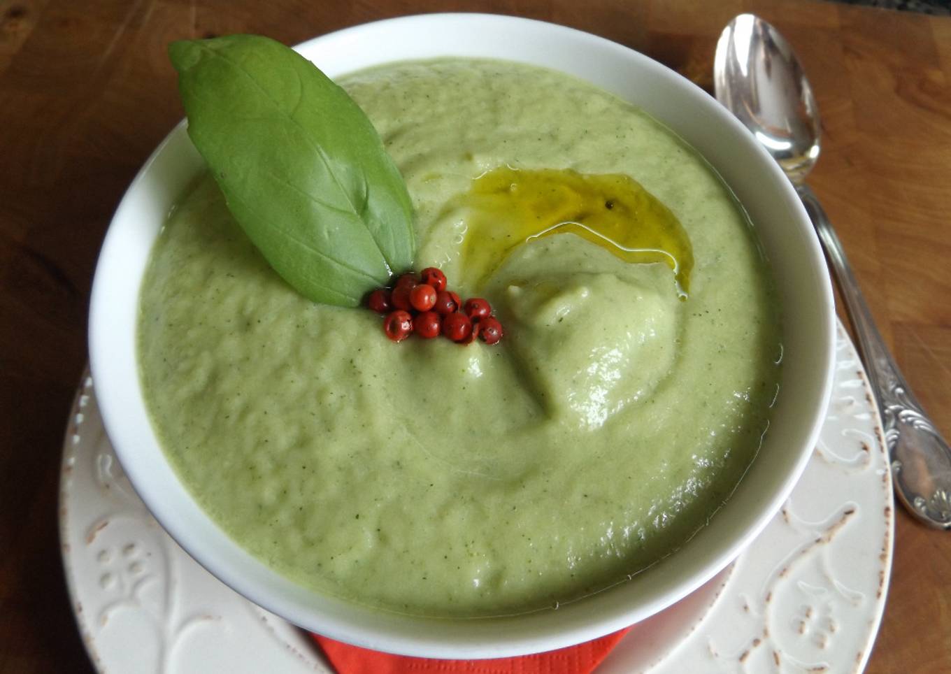 - Cuando esté el calabacín incorporar la albahaca y el zumo de limón. Verter la nata, un chorretón de aceite, y salpimentar. Triturar y conservar en la nevera hasta el momento de servir.
