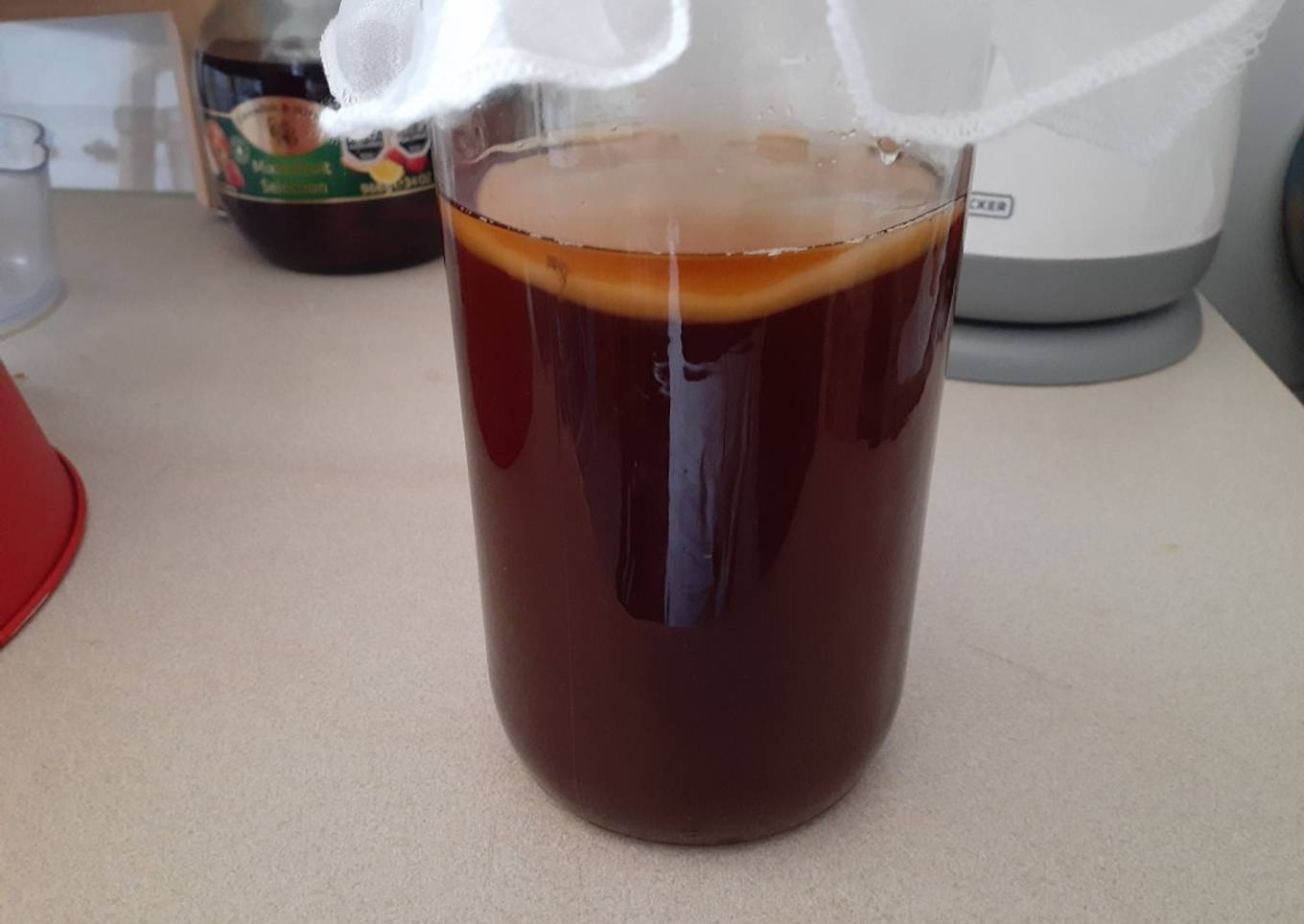 He escuchado mucho sobre la Kombucha que es una bebida probiótica de té fermentado que se hace con la ayuda de un SCOBY, siglas en inglés de Symbiotic Culture of Bacteria and Yeast (Colonia Simbiótica de Bacterias y Levaduras), que es una especie de disco formado por bacterias y levaduras y que viene de un cultivo anterior. Acá en mi ciudad (Chiguayante, Chile) hay un grupo en instagram llamado @Kombu_conce que venden frascos de kombucha en distintos sabores y también venden el kit iniciador con sus instrucciones. Este es el reporte de la puesta en marcha de mi kombucha casera.