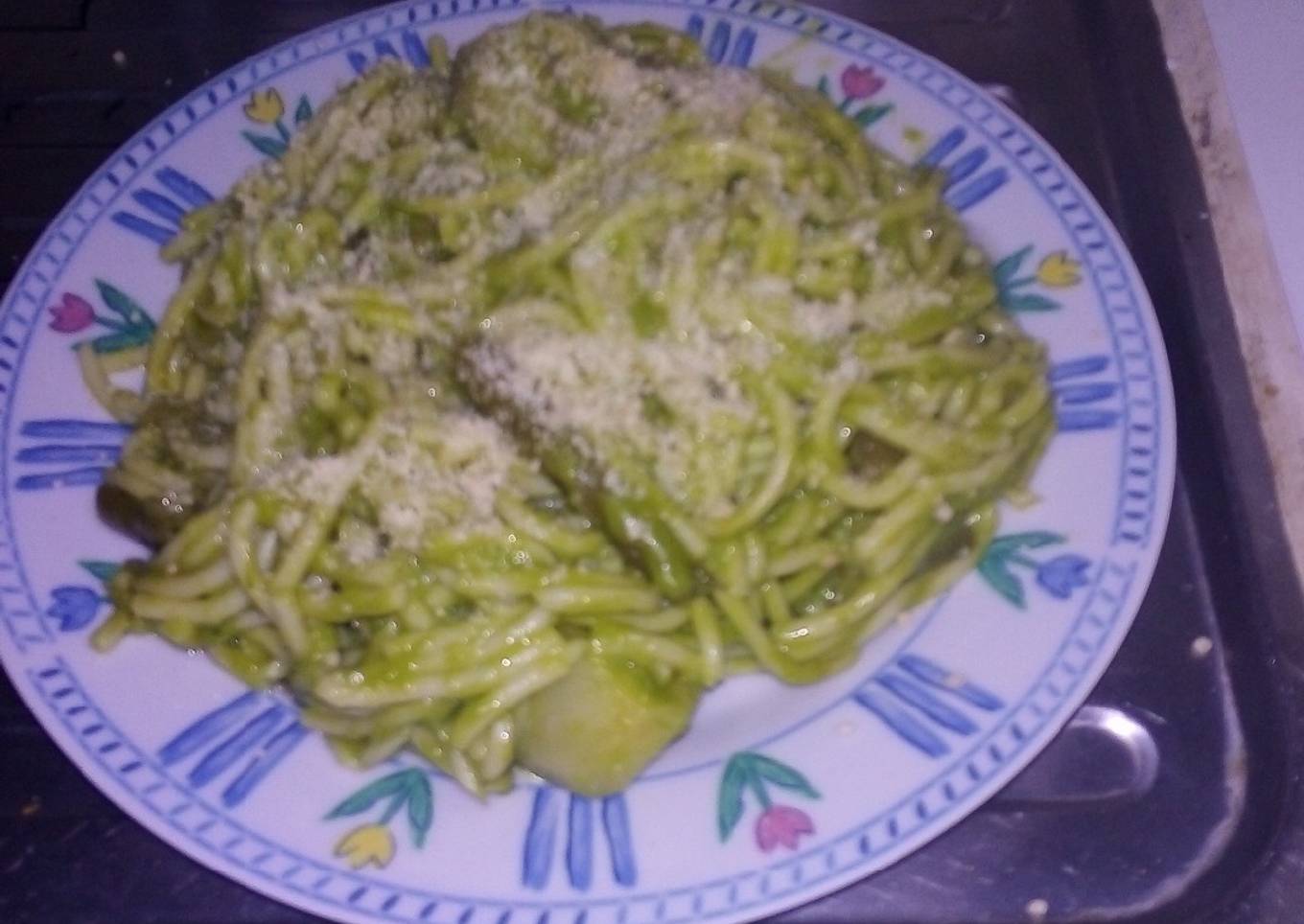 Tallarines verdes con bisteck