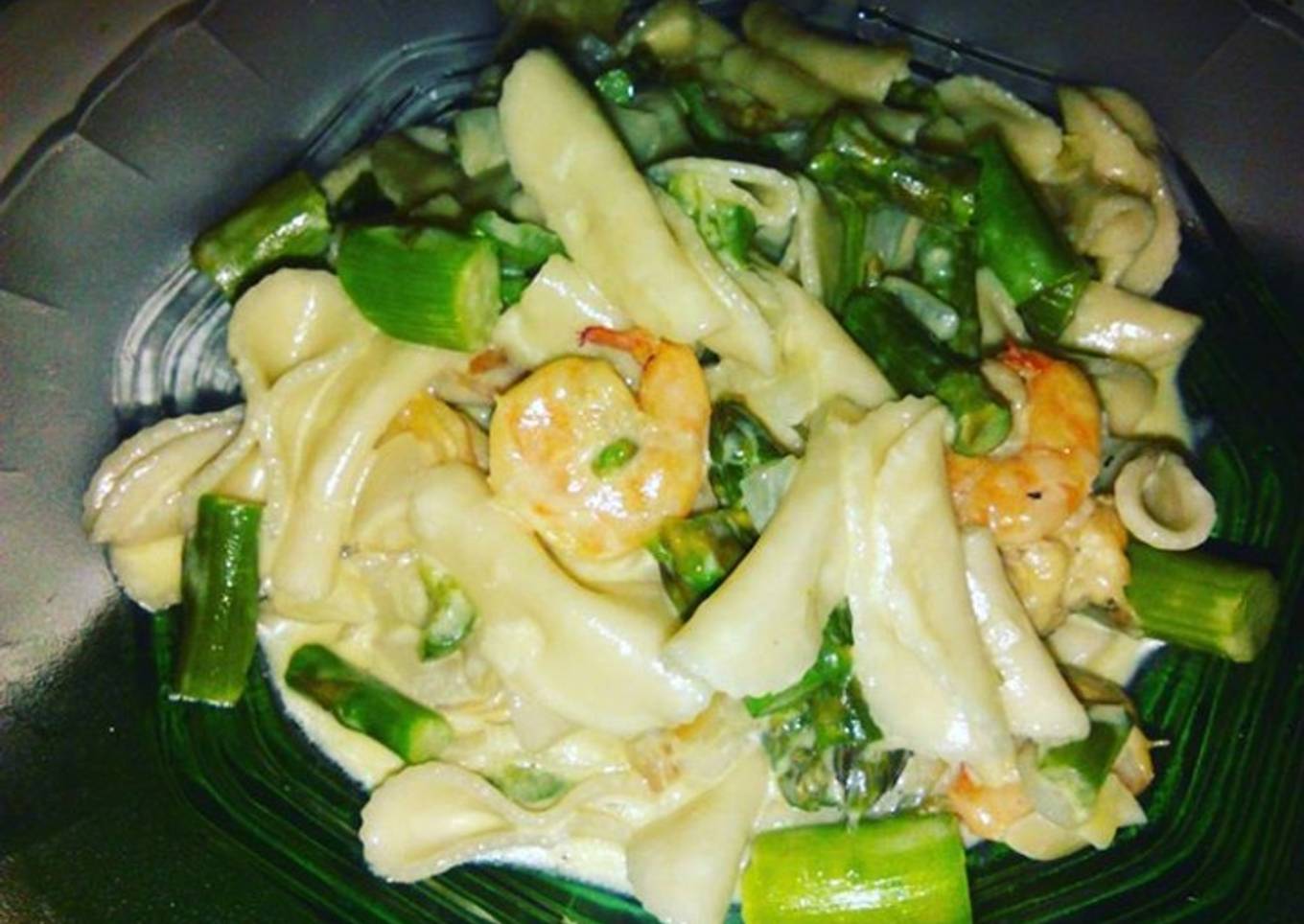 - Servimos agregamos nuestra salsa con camarones, espárragos y champiñones, el toque final el quesito parmesano y listo a comer!!!