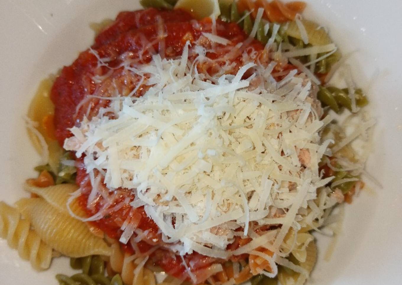 - Servir la pasta, añadir la salsa de tomate y el atún y añadir parmesano rallado