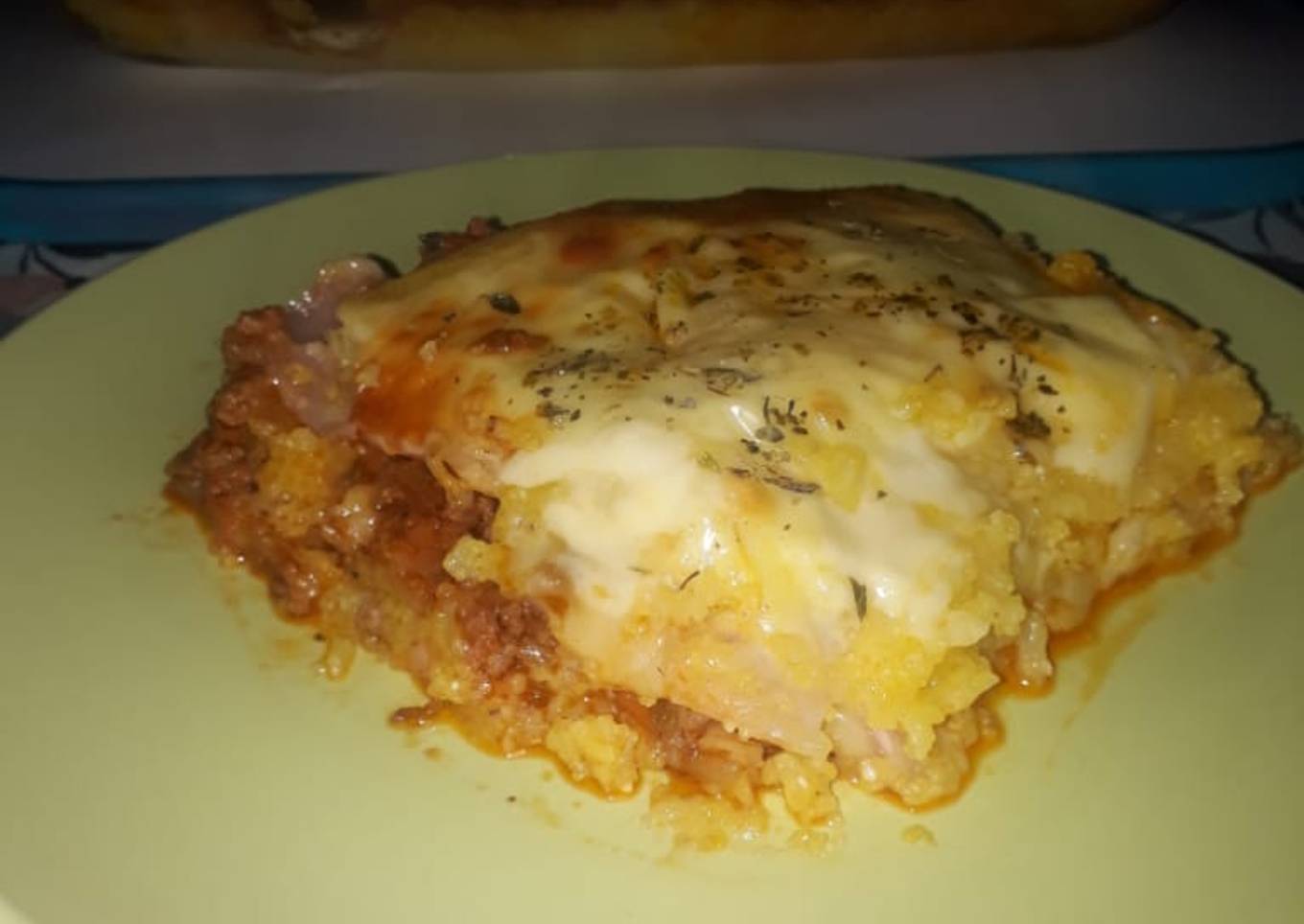 - Ya pronto todo resta preparar en una fuente colocar la mitad de la polenta encima se agrega el tuco y el fiambre, primero una capa de paleta otra de mozzarella y otra de paleta y se coloca el resto de la polenta y encima se agrega mozzarella y orégano opcional 😉