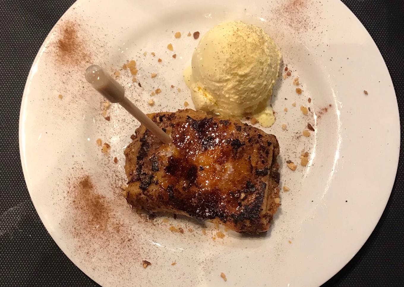 - La acompañamos, con una bola de helado y le espolvoreamos un poquito de canela