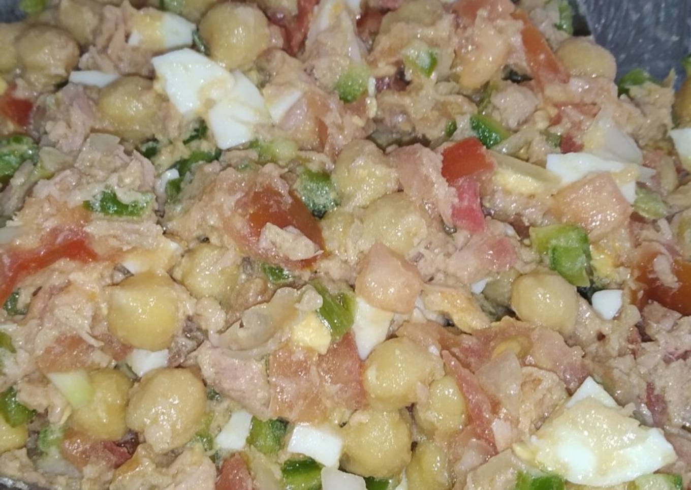 Ensalada de garbanzos, huevo y atún