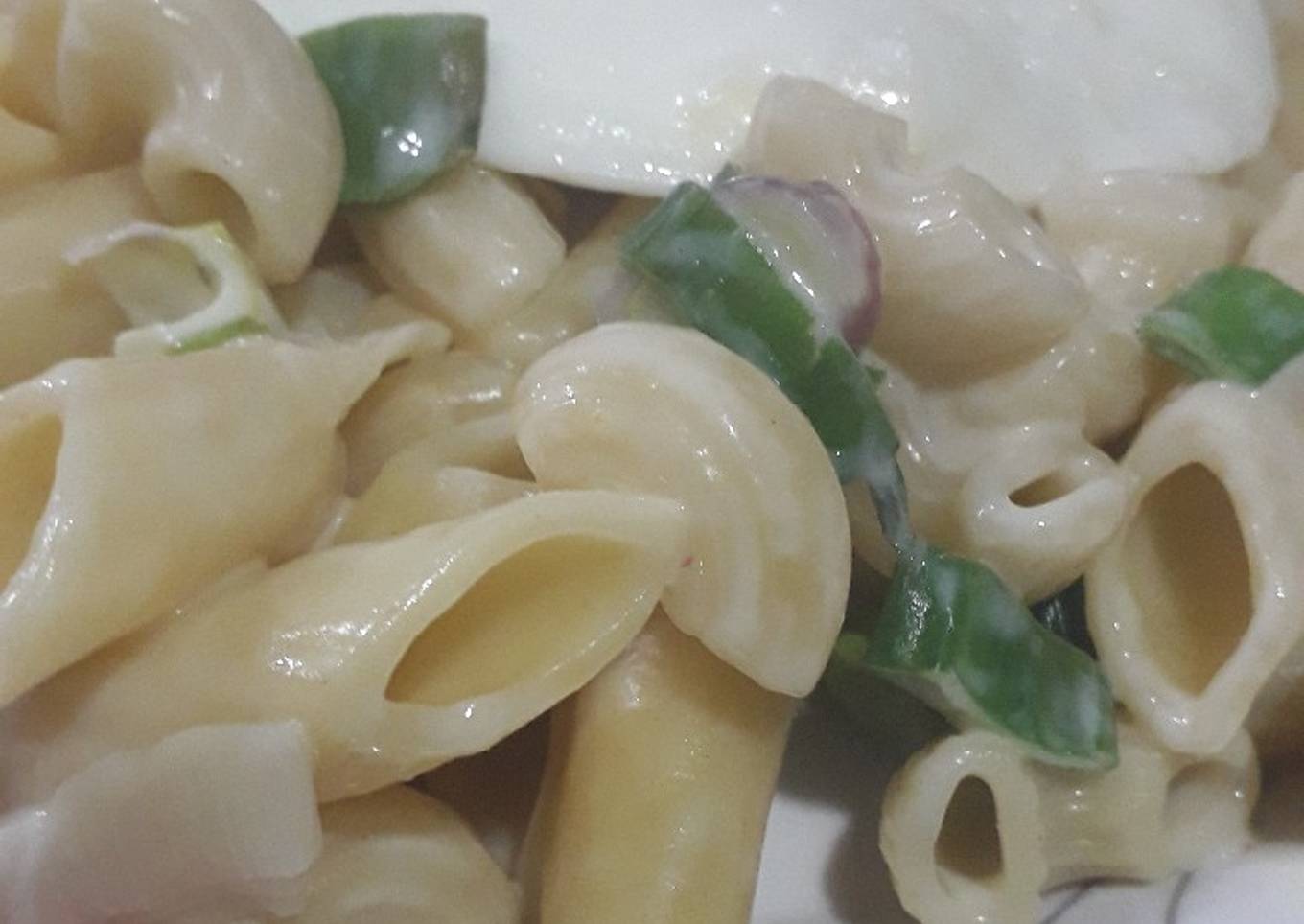 - En una cacerola coloque los fideos, el verdeo y el queso crema +1 chorrito de agua