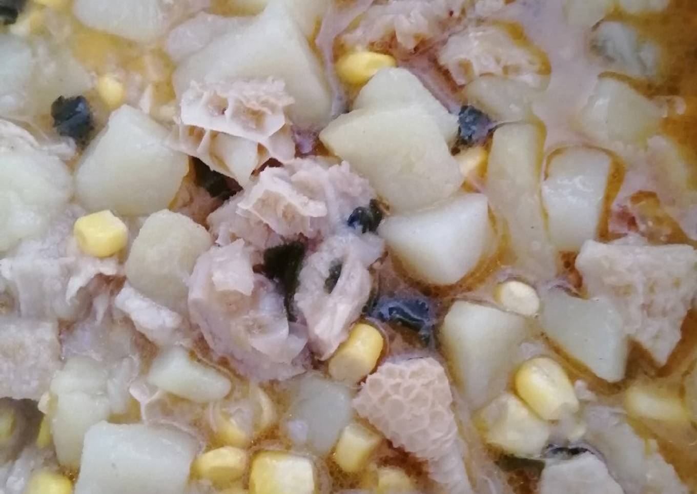 - Luego al sartén de la cebollas agregar la guatitas picadas y revolver por 5 minutos, luego hacharla ha la olla de las papas y revolver hasta qué estén blandas y hachar el choclo en granos, o un surtido, revolver y cuando las papas estén blandas estará listo, servir con un poco de perejil o cilantro a gusto.