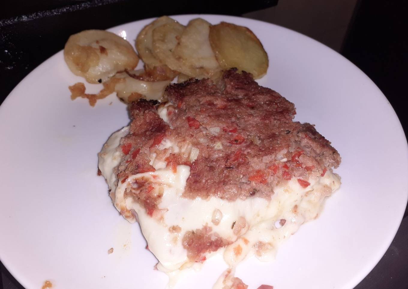 - Armar en una fuente previamente aceitada. Poner la mitad decla preparación