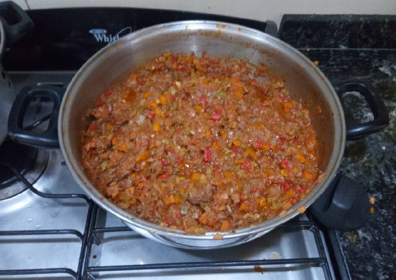 - Veremos que las verduras han sacado su jugo, le incorporamos la carne picadita y el jugo de su cocción