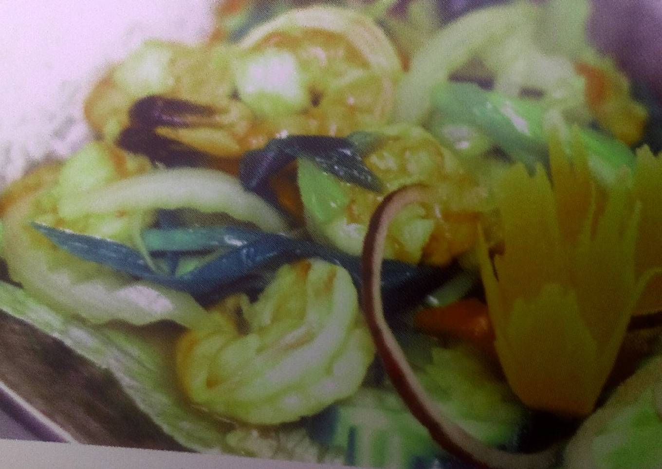 Salteado de verduras con camarones en salsa de ostras