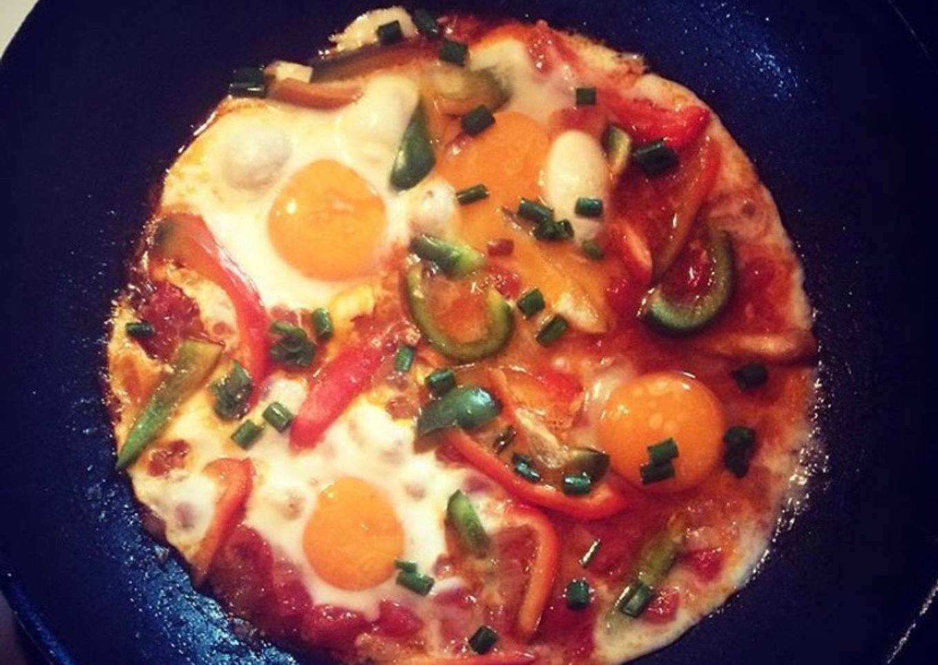 Este es un plato a base de huevo y salsa de tomate, tradicional de la comida árabe e israelita, con algunas variaciones según el país. Yo hice una versión sencilla, pero se le puede echar más ingredientes.