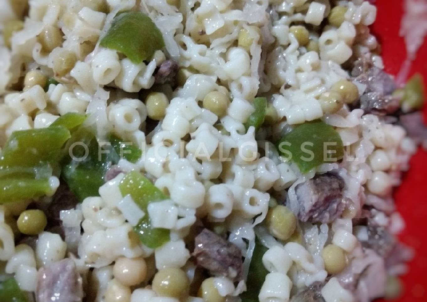 - Si no tienen fideos preparar, al menos calcular para 2 personas, y cortarle la cocción con agua fría. Colar y reservar en bowl. Añadir la carne troceada en cubos o como más les parezca, añadirla al bowl. Añadir las arvejas (enjuagadas con anticipación)(yo usé las que vienen listas). Cortar el morrón en cubos, cocinarlo unos pocos minutos, cortarle la cocción, colar y añadirlo al bowl con el resto de la preparación. Mezclar hasta integrar todo y servir.