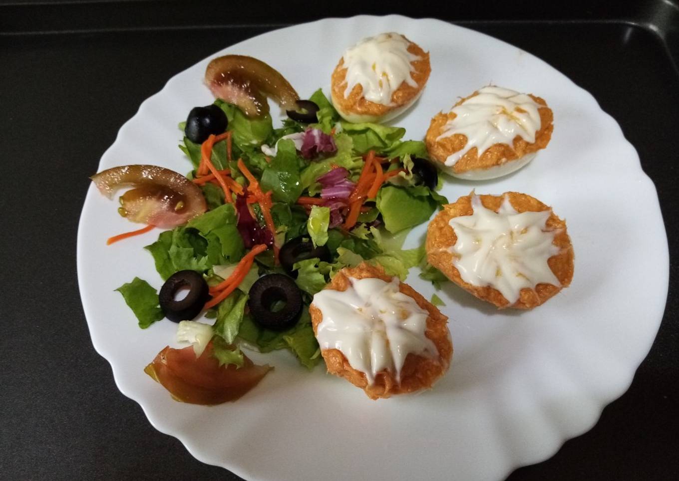 - Después rellenamos los huevos y les ponemos la mayonesa encima decorando a nuestro gusto