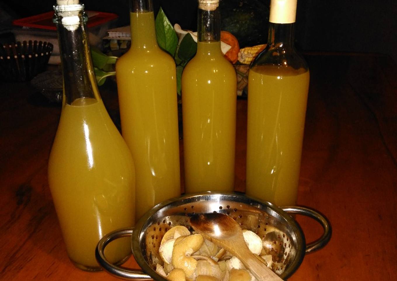 - Último paso, la mezcla, filtrado y embotellado, este proceso también es sencillo. Colocamos un colador limpio sobre el almíbar y echamos la maceración con la cáscara y el alcohol, luego retiramos el colador, vamos a ver que ya tenemos nuestro licor. Sobre una bandeja para no desaprovechar, con un embudo y colador de tela filtramos mientras vamos embotellando en las botellas limpias y esterilizadas previamente y conservamos en algún lugar seco y oscuro para consumir frío, y listo.👍